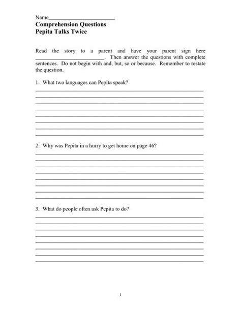 Read Pepita Talks Twice Comprehension Test Answers Reader